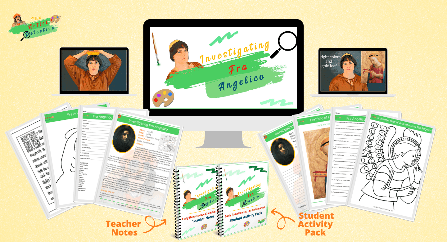 From The Artist Detective: An art appreciation unit study for elementary and middle school students where Rembrandt, the famous Dutch artist, helps your children investigate the life and art of Italian Early Renaissance artist, Fra Angelico.