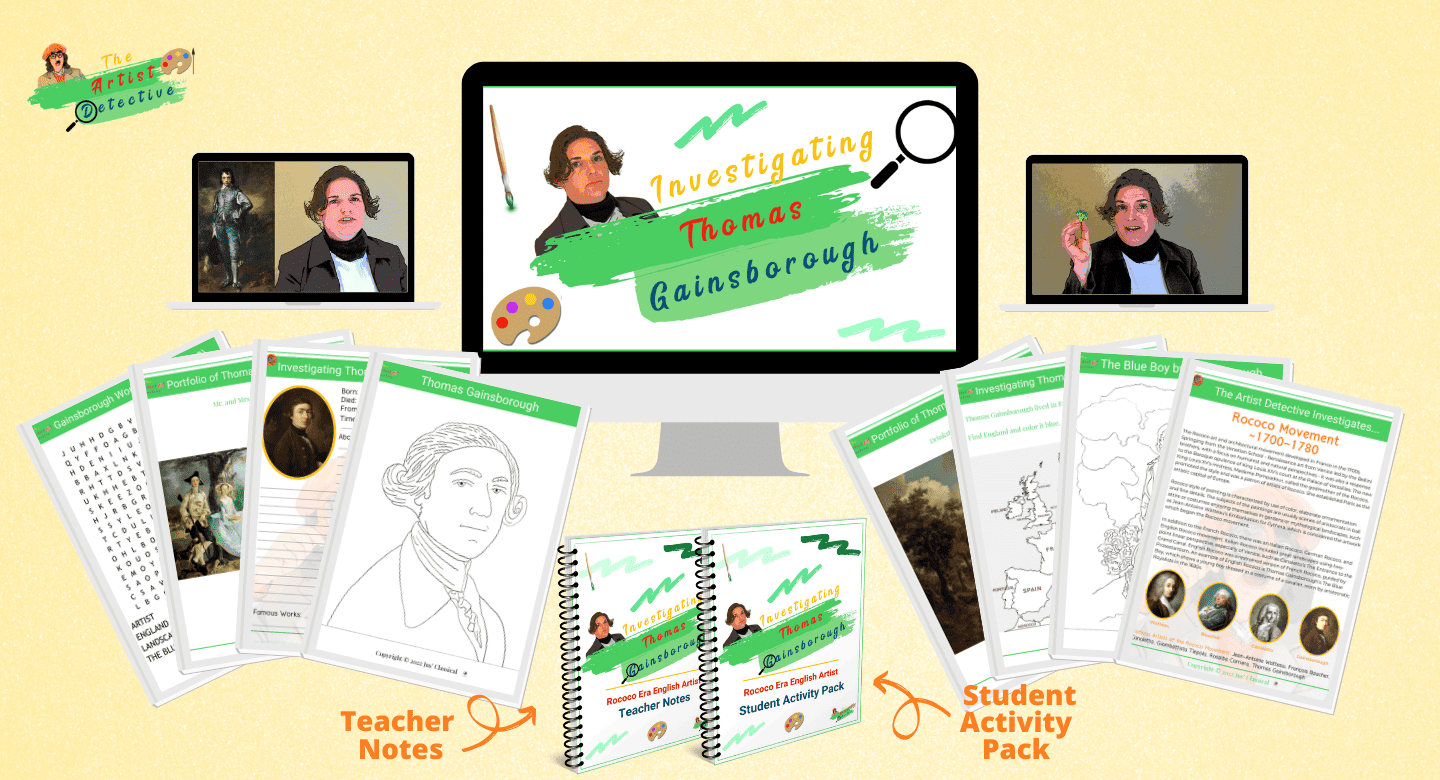 From The Artist Detective: An art appreciation unit study for elementary and middle school students where Rembrandt, the famous Dutch artist, helps your children investigate the life and art of Thomas Gainsborough, an English Rococo Era artist.